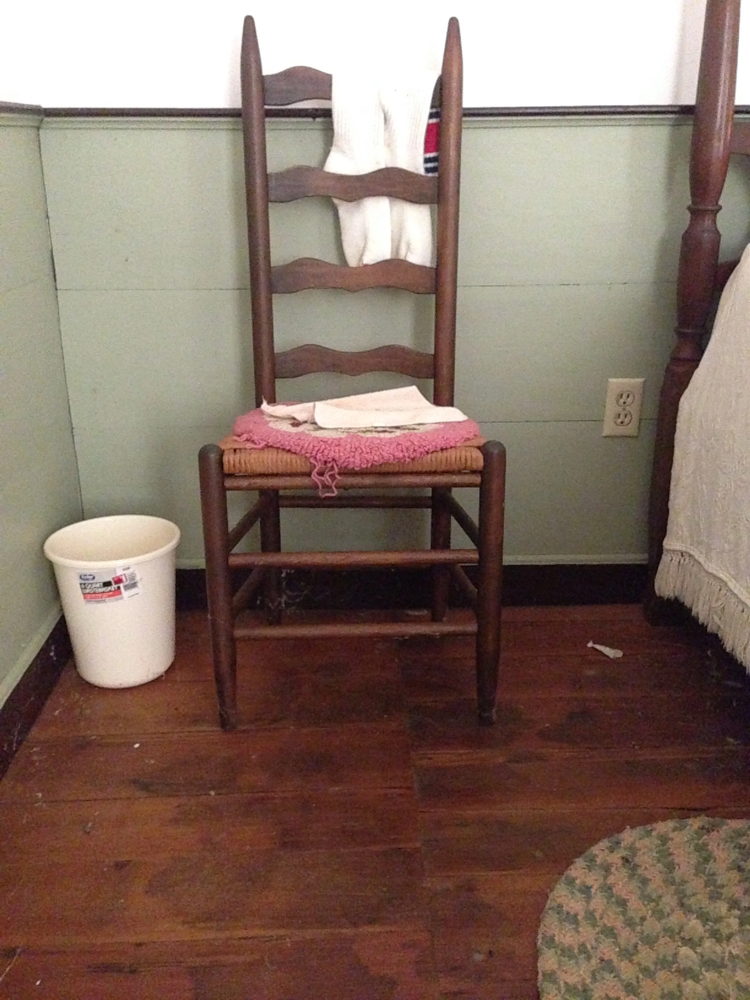 We went across the hall to a large bedroom that Ann called “the Birthing Room.” The blood-stained floor on the far side of the bed shows there was a struggle…let’s take a second and salute all the mothers out there!