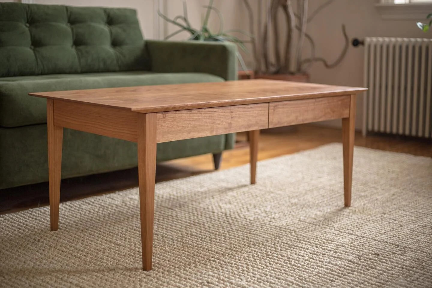 The Maynard Coffee Table is a continuation of the Shaker-inspired collection in dedication to Nick’s maternal grandmothers. The perfect blend of form and function, this elegant design is crafted using 100% hardwoods and features mortise and tenon joinery with two dovetailed drawers and concealed pulls.