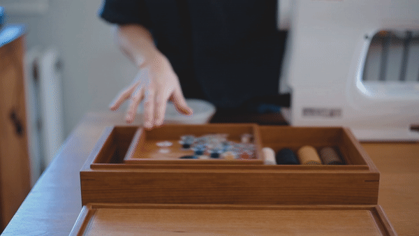 Nick made this personalized keepsake box for Erin’s 30th birthday. The entire box was built from one board to ensure matching grain and even color. It features mitered and splined joinery, hand-carved initials, and a sliding tray to hold those smaller treasures. Erin quickly found great use of it and filled it with her growing collection of sewing supplies.