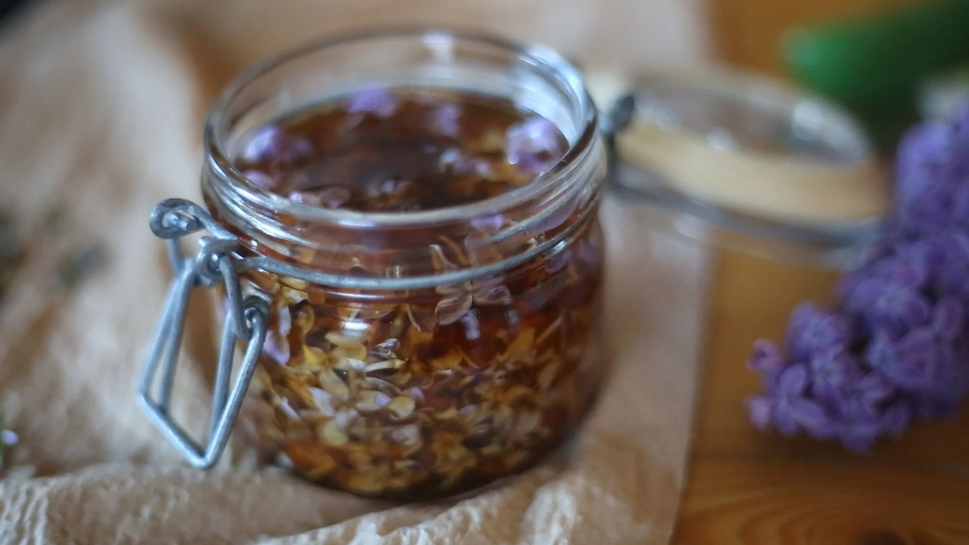 Fill the jar with honey and close the lid tightly. Let steep for at least a week, or up to a few weeks for a stronger lilac flavor.